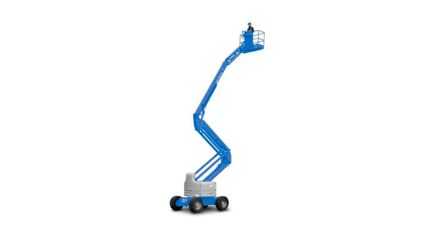 Esta plataforma Genie, que puedes encontrar a la venta en Tracsa - The Cat Rental Store, ofrece una altura máxima de trabajo de 20.16 m, y un alcance horizontal de hasta 11.15 m, con una capacidad de carga de 227 kg.